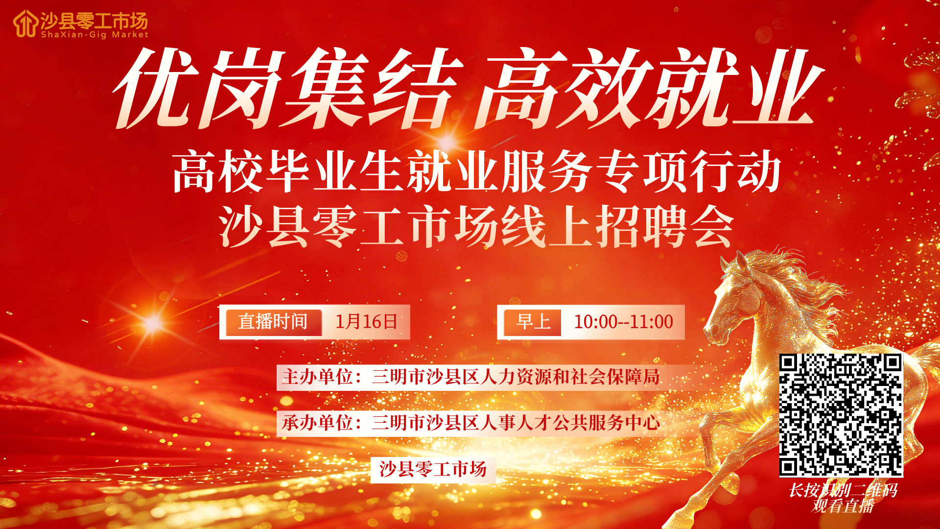 优岗集结,高效就业——沙县零工市场线上招聘会(第一期)